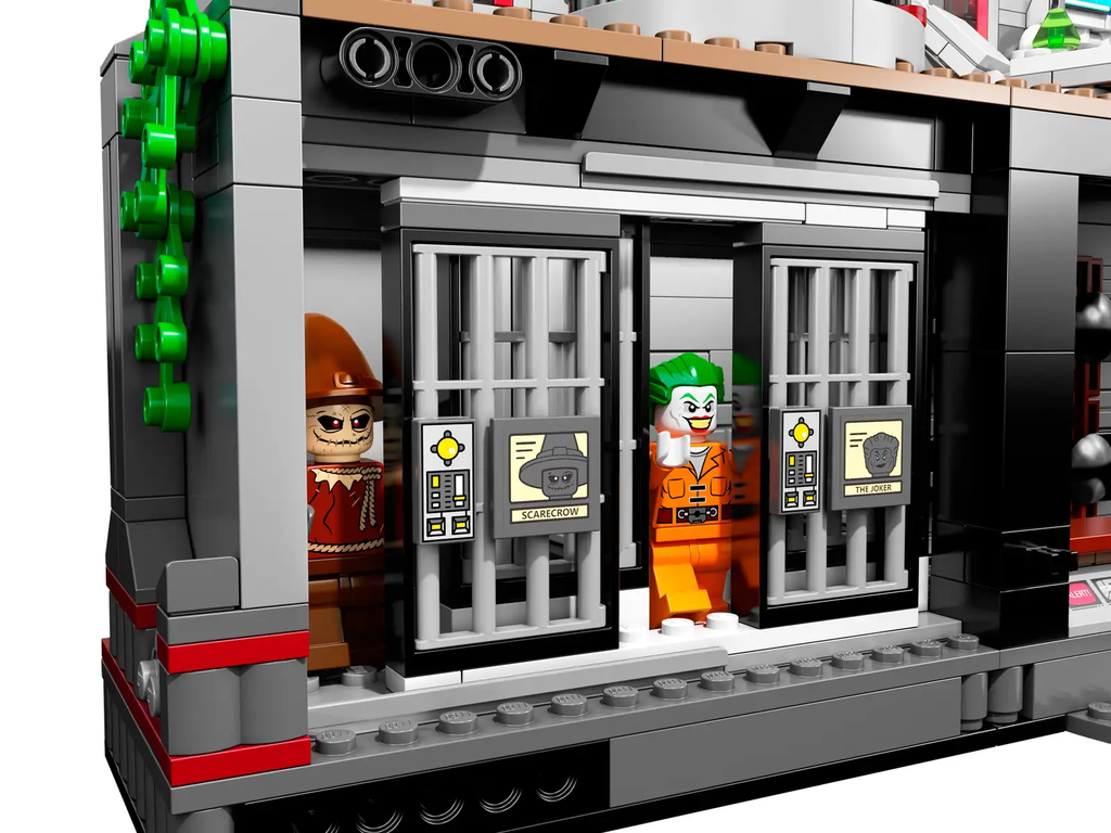 - Arkham Asylum features opening cell doors, special Poison Ivy cell with transparent doors, the Mr. Freeze icy tower room, the Dr. Harleen Quinzel office and changing room, medical treatment room and security reception area