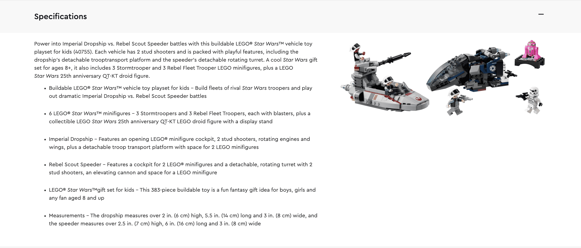LEGO Star Wars Imperial Dropship vs. Rebel Scout Speeder 40755